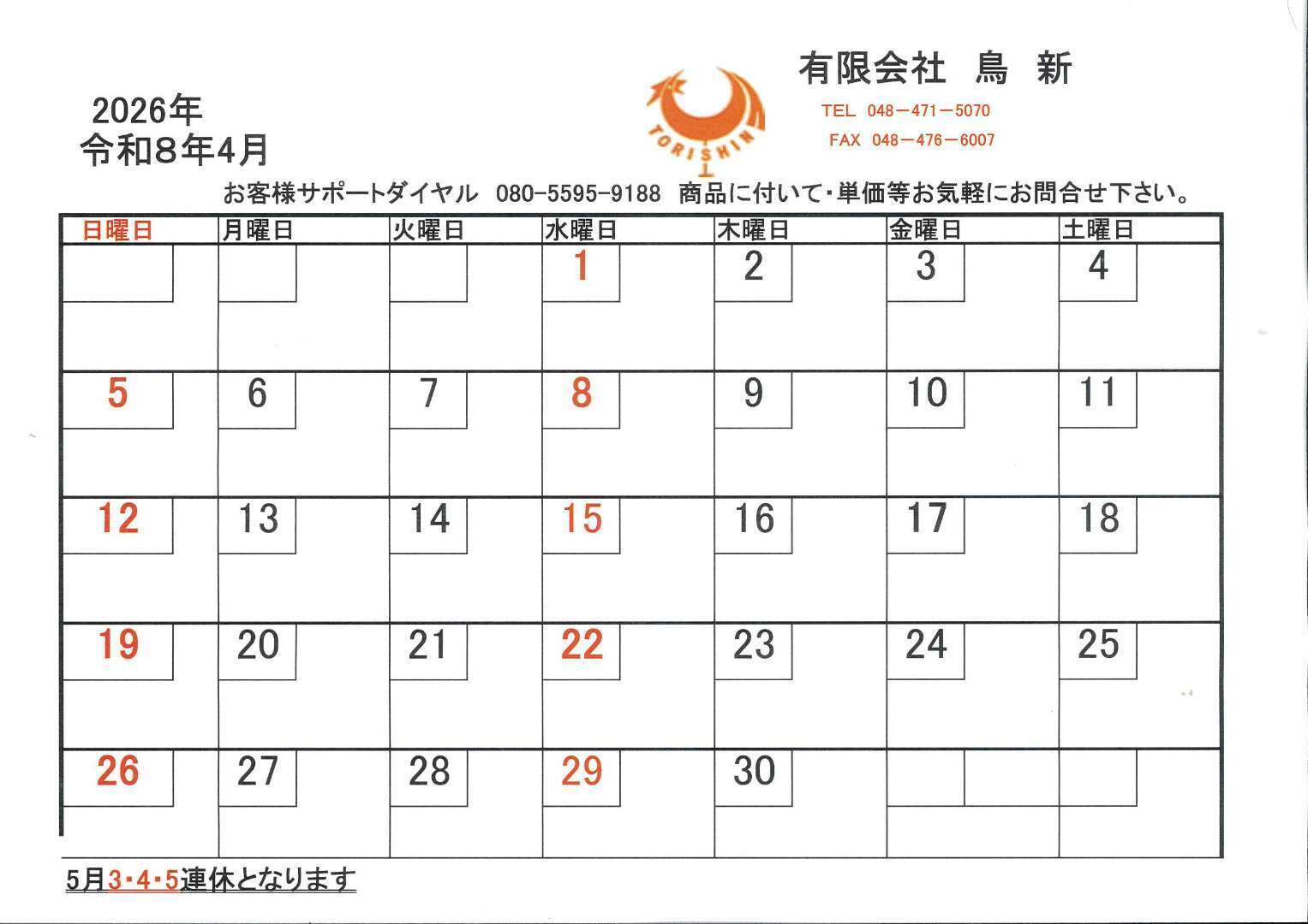 旧年中は弊社ご利用頂きまして誠にありがとうございます。 令和3年5日より営業させて頂きます。